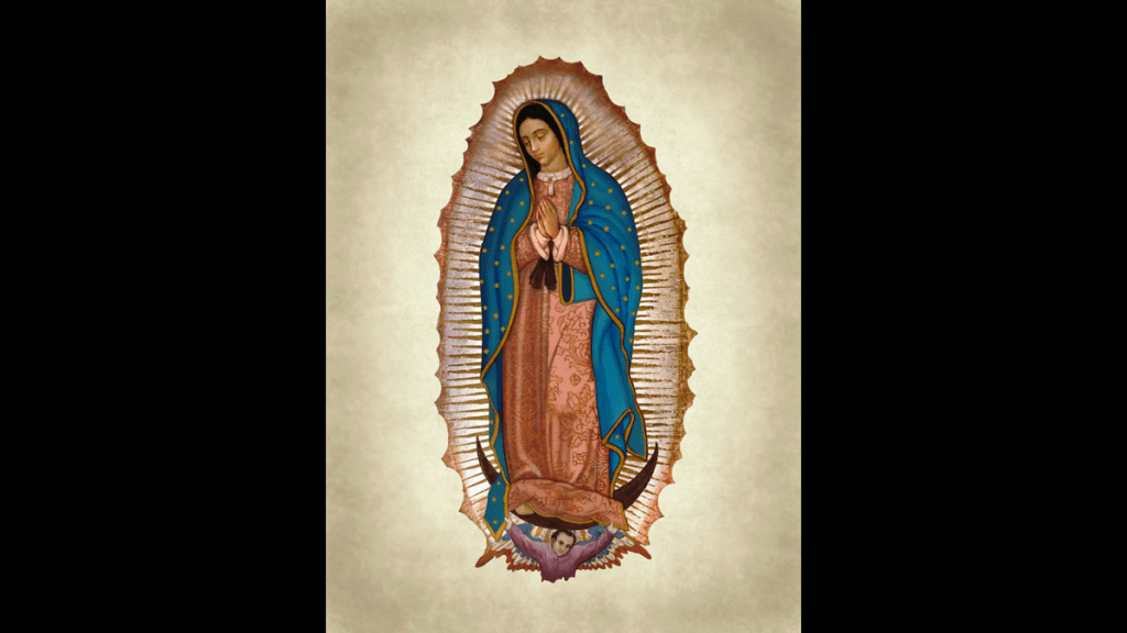 The Shrine of Our Lady of Guadalupe, in Mexico City, is one of the premier pilgrimage sites in the Americas—in 2021, an estimated 1.5 million pilgrims gathered there on her feast day. Throughout the Americas, many other observances of the Virgin’s feast day will take place on December 12. Her feast, on that day, commemorates Mary’s December 9–12, 1531 appearances to Saint Juan Diego, the Náhuatl-Aztec who had recently converted to Catholicism, whose own tilma or cloak bore—and continues to bear—the miraculous imprint of her image from when “the desert rejoiced and blossomed” (Is 35:1) at Mt. Tepeyac with Castilian roses blooming in December: the image of the La Morenita, the indigenous mestiza clothed with the sun and wearing the cinta, the band of pregnancy, standing on the moon, head bowed and hands folded in prayer, and born aloft by an angel of the Lord.
