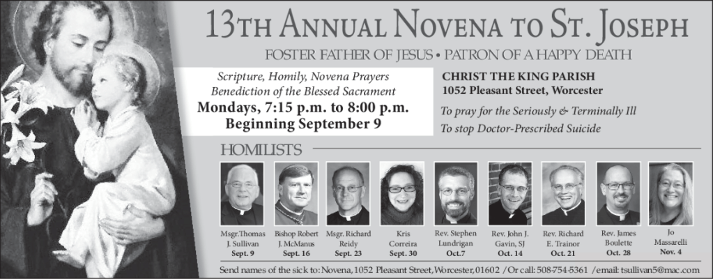 Please join us each Monday evening at Christ the King parish in Worcester from 7:15 until 8 pm . St. Joseph. patron of a happy death, pray for us!